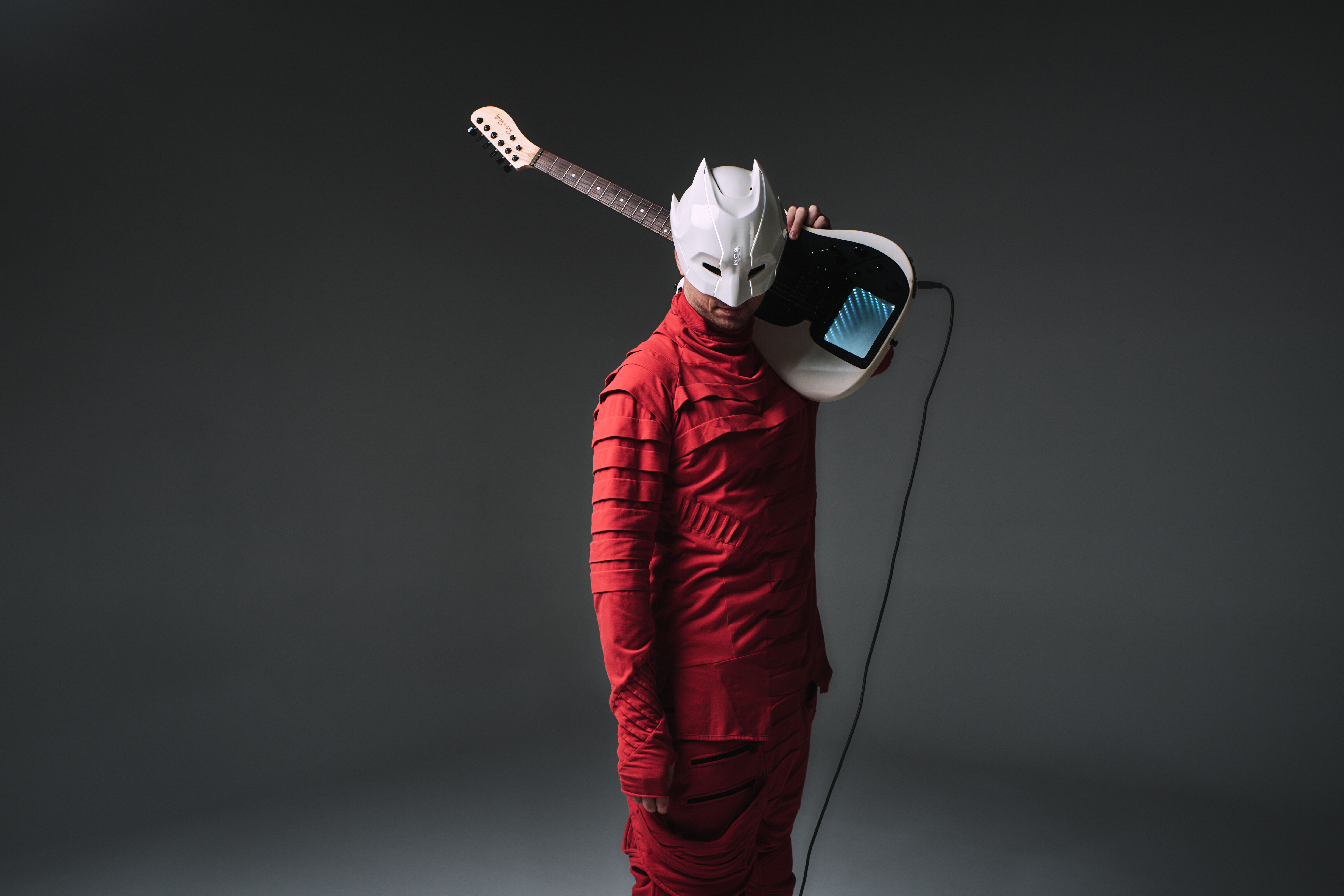 La sua identità resta sconosciuta: Red Sky non mostra mai il volto. Indossa una Maschera Kintsugi che rappresenta un’anima spezzata e ricomposta, le crepe che diventano luce. Non è un travestimento, ma un simbolo: un ponte tra fragilità e rinascita, tra ferita e forza, che incarna il cuore del suo progetto artistico.